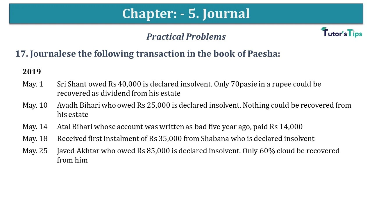 Chapter 5 Journal Usha Publication Class 1 Solution